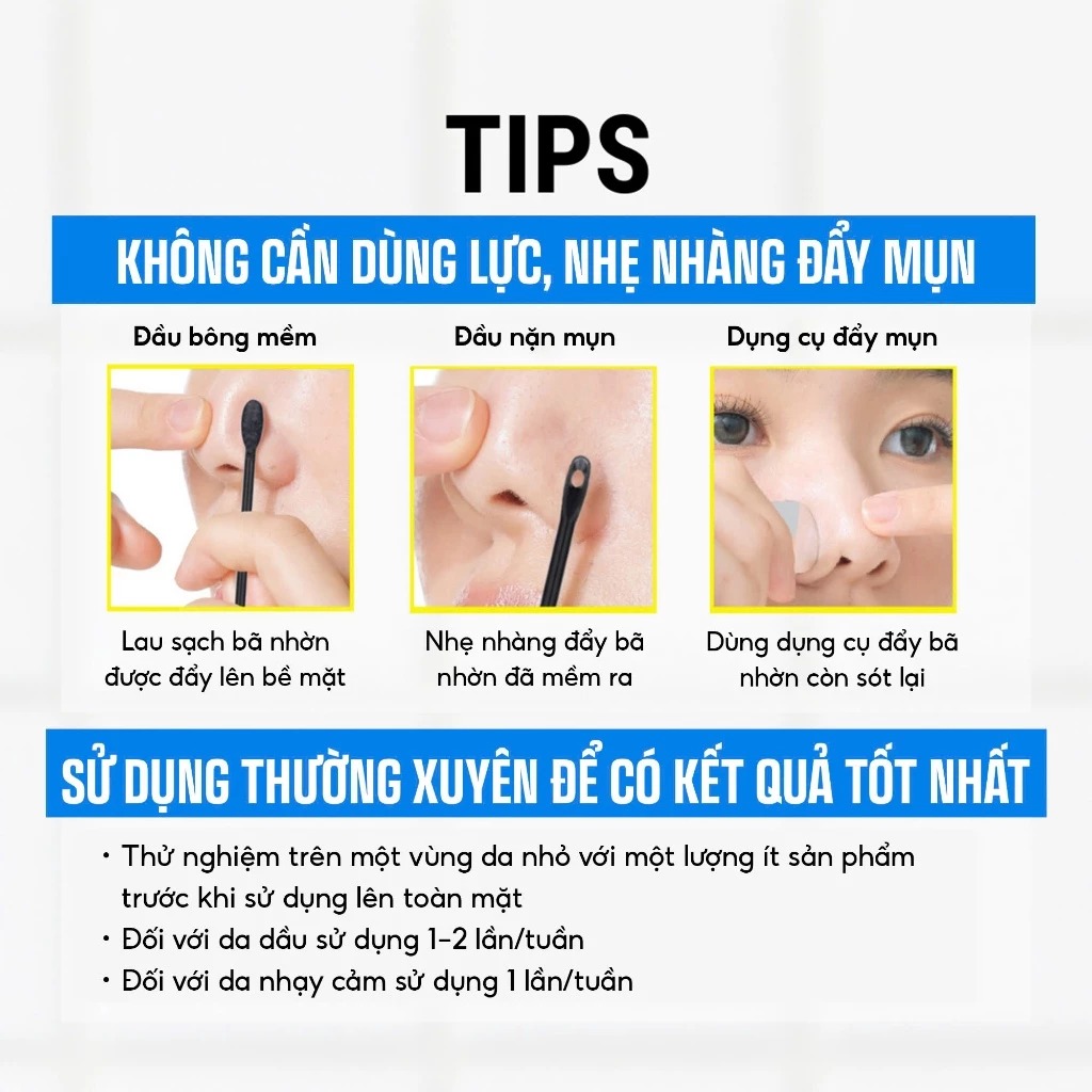 - Dành cho da mụn đầu đen, mụn đầu trắng, bã nhờn