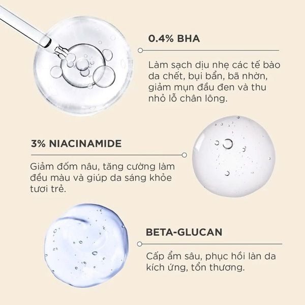 ✨ BHA (Salicylic Acid): Làm sạch sâu, giảm mụn, loại bỏ dầu thừa.