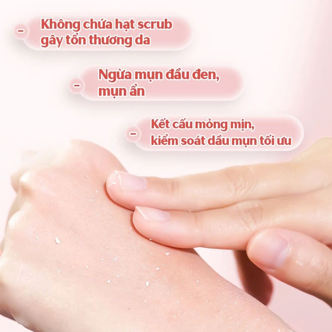 Làm sạch hoàn toàn các tế bào da chết, bã nhờn, bụi bẩn nhẹ nhàng