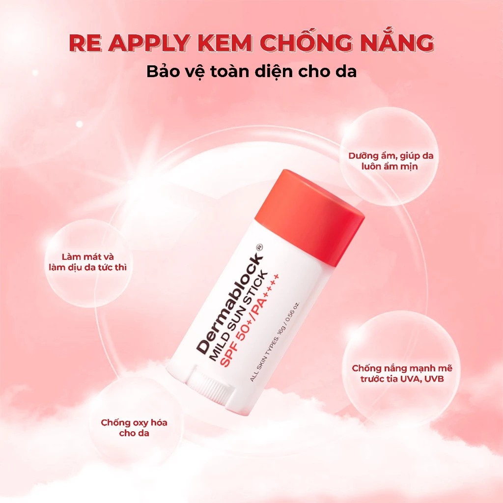 Sáp chống nắng dạng thỏi Re-apply cho mọi loại da Dermablock Mild Sun Stick SPF 50+ PA++++ 16g