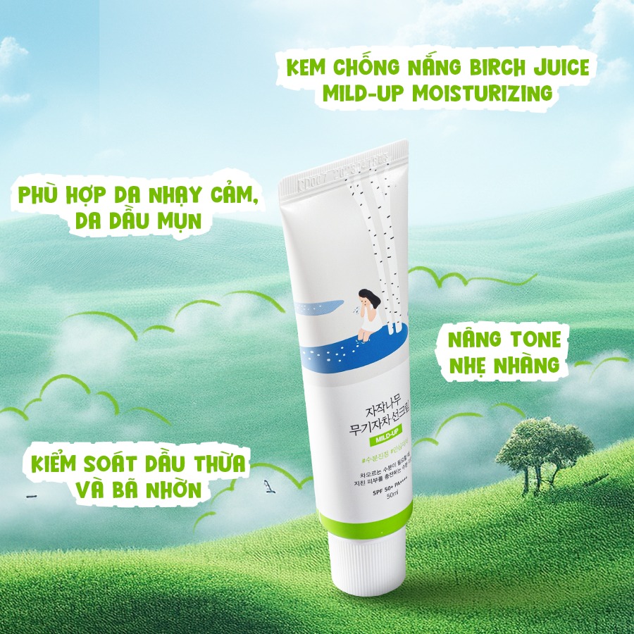 👉 3. Kem chống nắng Round Lab Birch Juice Mild-up Sunscreen 50ml (xanh lá)