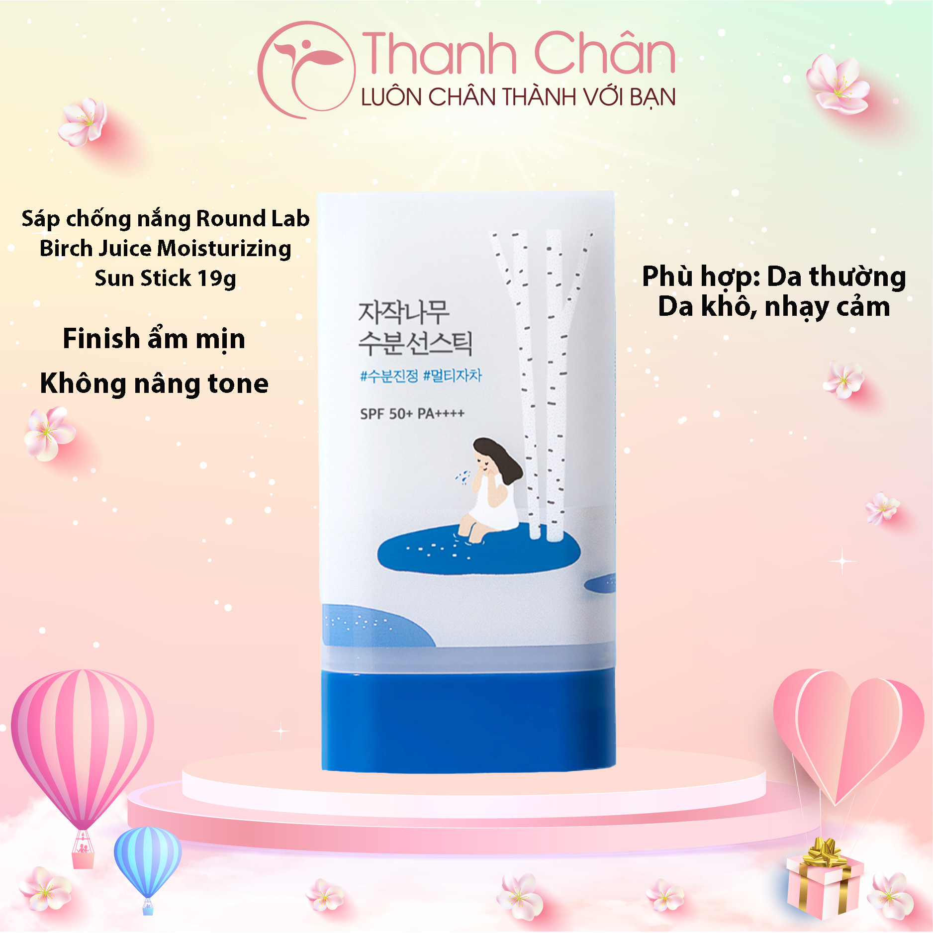 👉 2. Kem Chống Nắng Round Lab Birch Juice Moisturizing Tone-up Sunscreen 50ml (Hồng)
