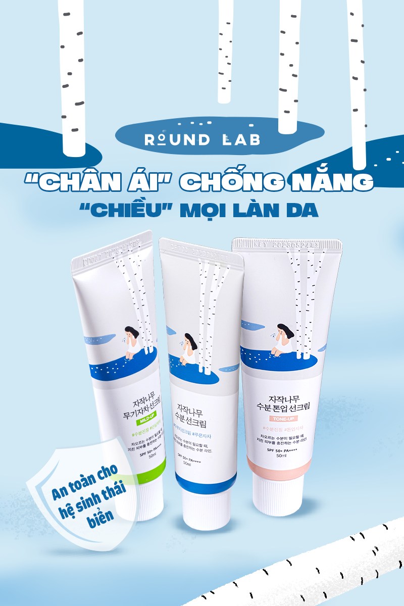 👉 1. Kem chống nắng Round Lab Birch Juice Moisturizing Sunscreen 50ml (Xanh dương)