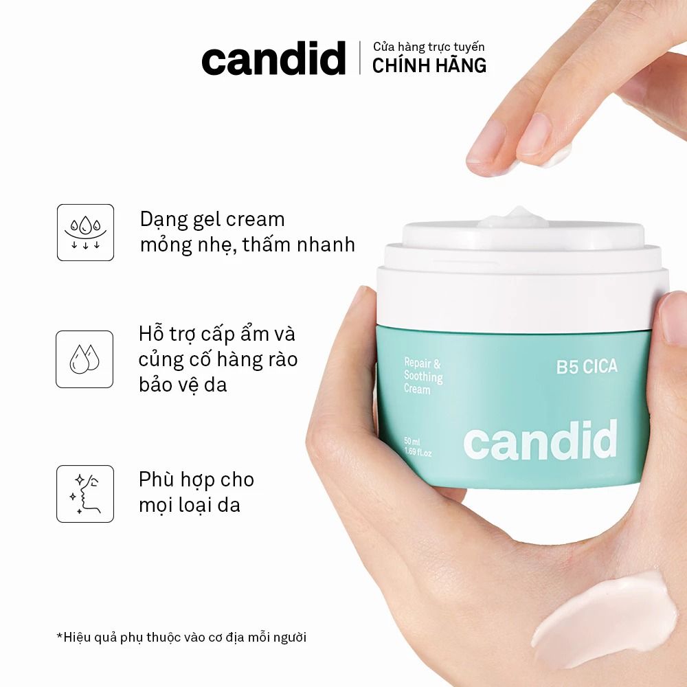 ✨ Candid B5 Cica Repair & Soothing Cream – kem dưỡng ẩm phục hồi da, làm dịu và tái tạo, chứa bộ 3 hoạt chất vàng: