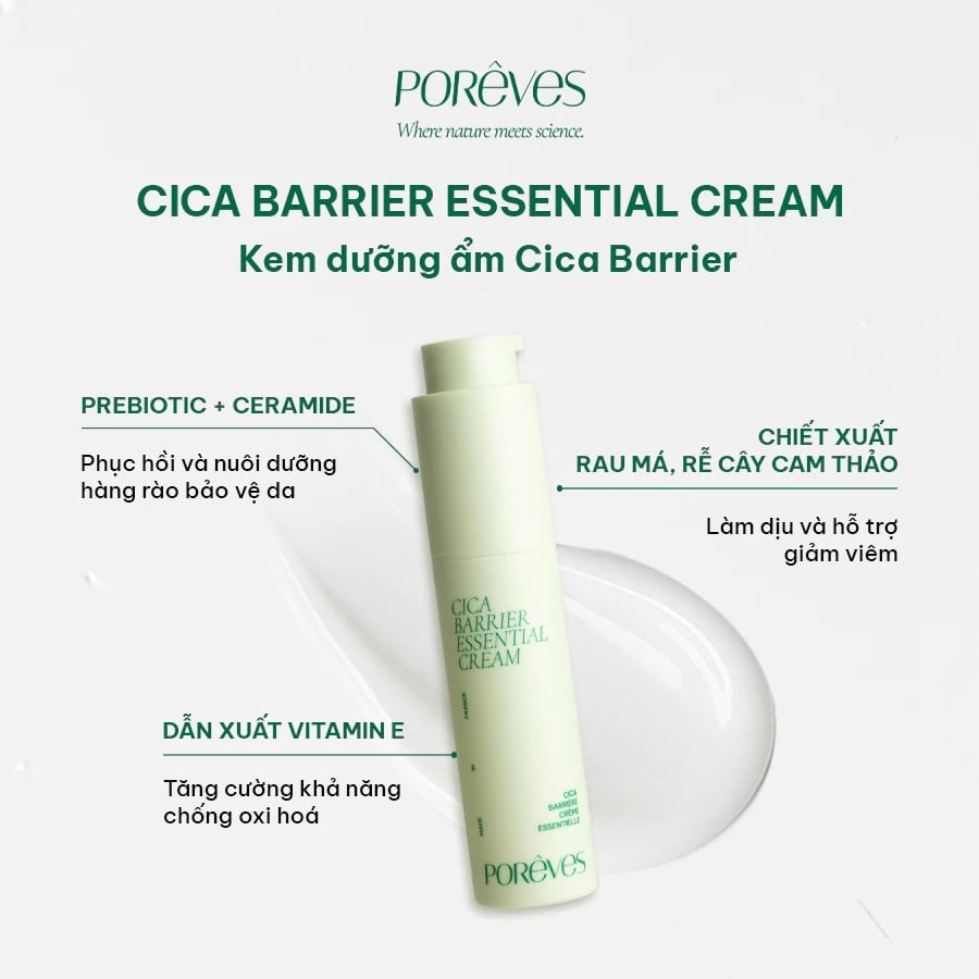 Kem dưỡng Poreves Cica Barrier Essential Cream 50ml