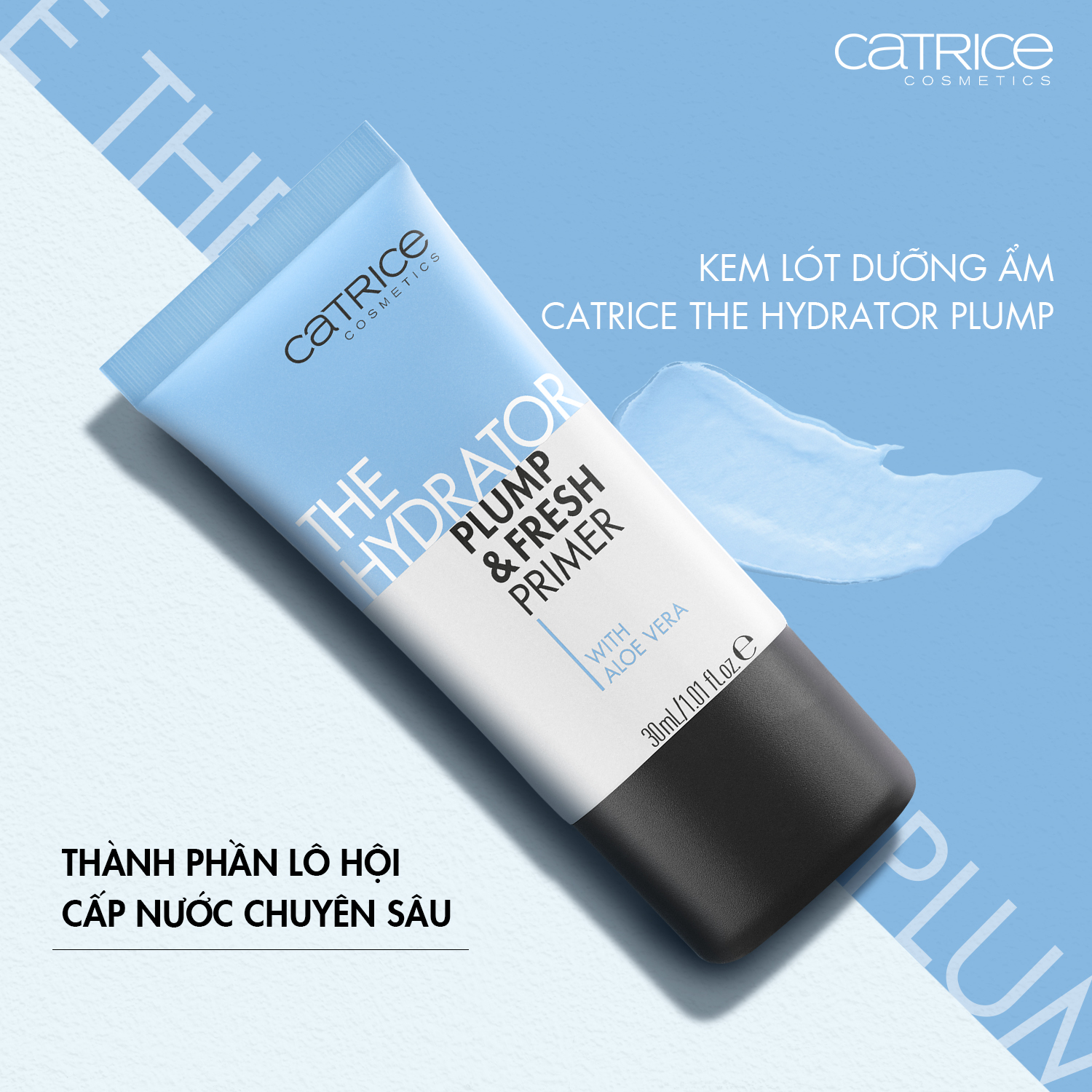 - Catrice The Hydrator Plump & Fresh Primer (Xanh Dương): Kem lót dưỡng ẩm, bổ sung chiết xuất lô hội giúp dưỡng ẩm, làm đều màu da, giữ lớp trang điểm lâu trôi.