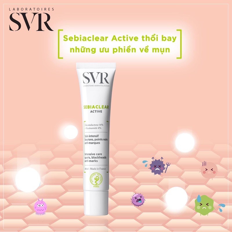 Kem Dưỡng Làm Giảm Mụn & Dầu Nhờn SVR Sebiaclear Active giúp điều trị các vấn đề về mụn, trả lại cho bạn làn da trắng sáng đầy tự tin. Sản phẩm với các thành phần được nghiên cứu và điều chế dành riêng cho việc điều trị mụn, giúp loại bỏ nhanh chóng hầu hết các tình trạng mụn không mong muốn và đồng thời giảm thâm, làm dịu da. Sau một thời gian ngắn sử dụng, bạn sẽ cảm nhận được làn da mềm mịn và căng tràn sức sống.