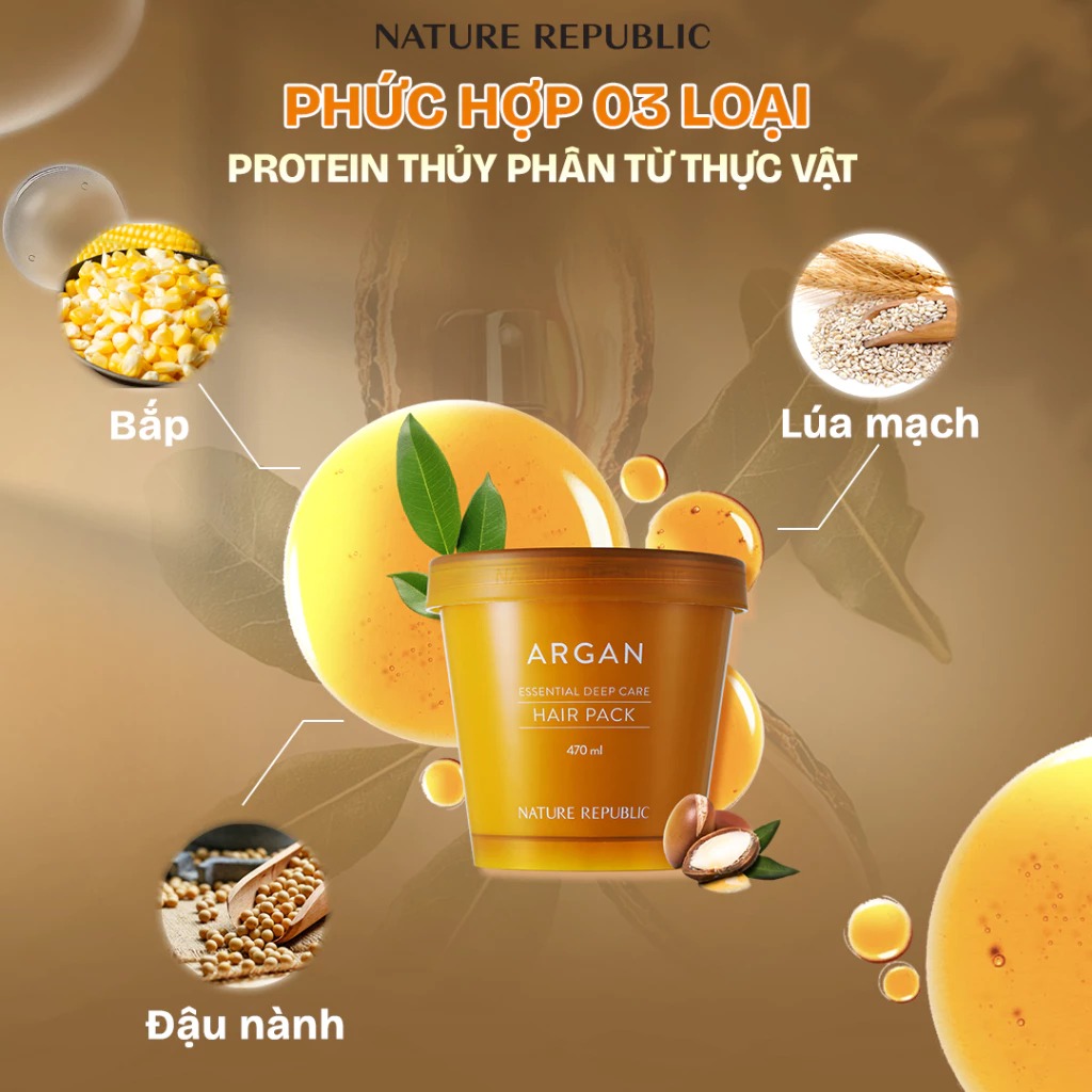Kem ủ tóc Nature Republic Argan Essential Deep Care Hair Pack 470ml
