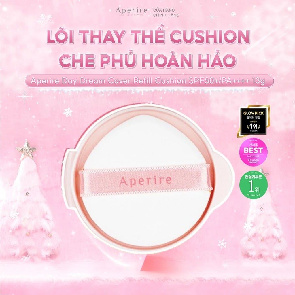 Aperire Day Dream Cover Cushion là phấn nước chống nắng cao cấp giúp che phủ khuyết điểm, hiệu chỉnh màu da và bảo vệ da trong suốt quá trình trang điểm. Sản phẩm ứng dụng công nghệ Satin-Fix với các hạt màu khoáng bọc dưỡng chất, mang lại lớp nền mịn lì, tiệp da tự nhiên và hạn chế bóng dầu. Kết hợp chỉ số chống nắng SPF50+/PA++++ giúp chăm sóc làn da toàn diện mỗi ngày.