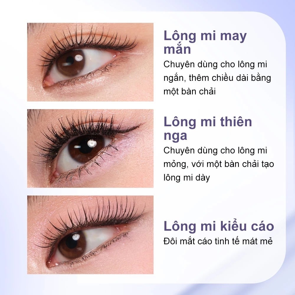 • Hiệu ứng dày mi tự nhiên, không bết, không nặng mắt.