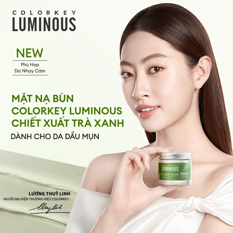 - Mặt Nạ Đất Sét Colorkey Luminous Green Tea Purifying Clay Mask với công thức chứa bùn khoáng tự nhiên kết hợp với chiết xuất trà xanh, sản phẩm giúp làm sạch sâu, kiểm soát dầu thừa và ngăn ngừa mụn hiệu quả.