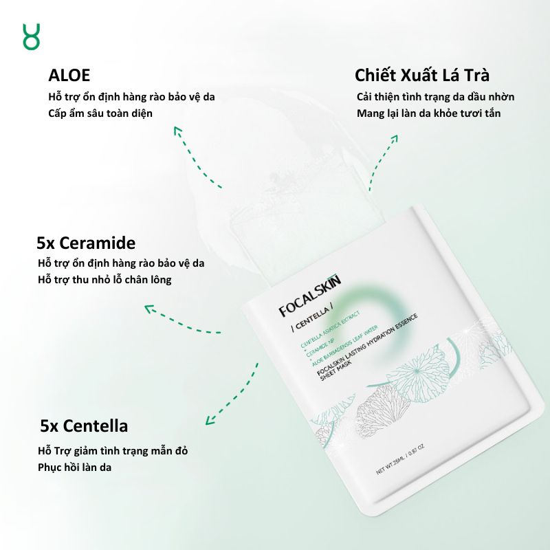 1. MẶT NẠ FOCALSKIN LASTING HYDRATION ESSENCE SHEET MASK (Centella - vỏ trắng)