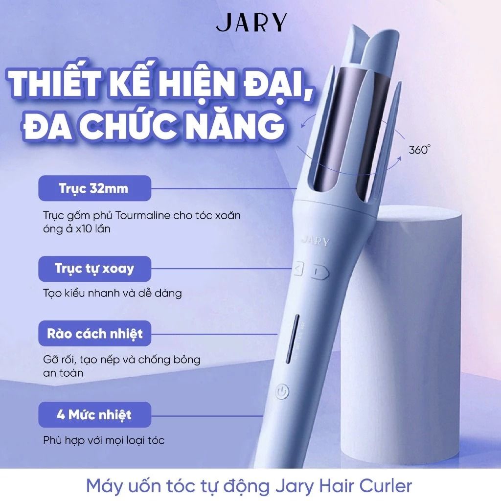 + Công Nghệ Uốn Tự Động Thông Minh: Máy uốn tóc Jary được trang bị công nghệ uốn tự động, giúp tóc tự động cuộn vào ống uốn mà không cần bạn phải quấn tay thủ công. Điều này giúp thao tác trở nên dễ dàng và nhanh chóng hơn, ngay cả đối với những người không quen tạo kiểu tóc.