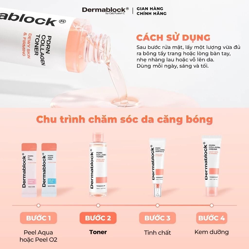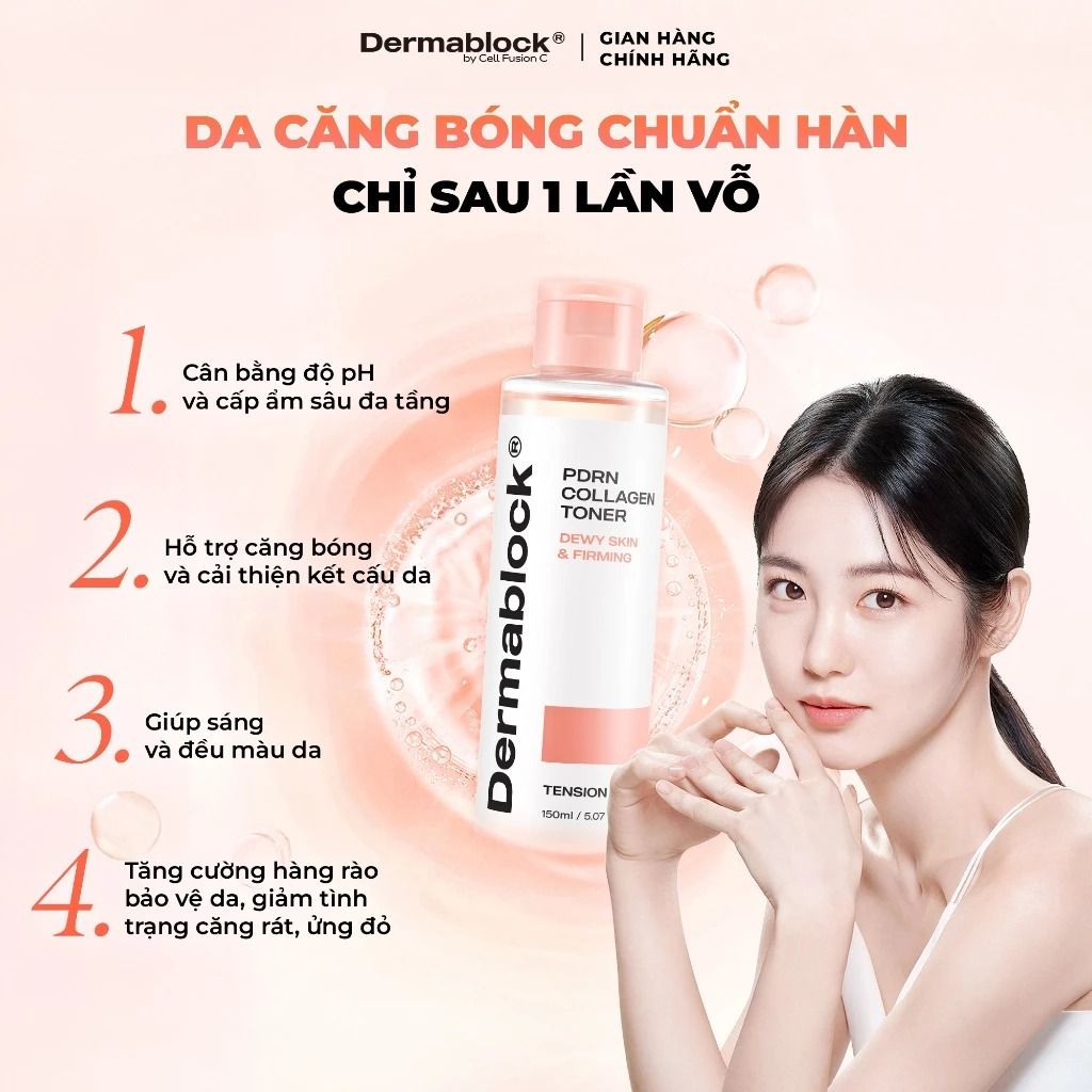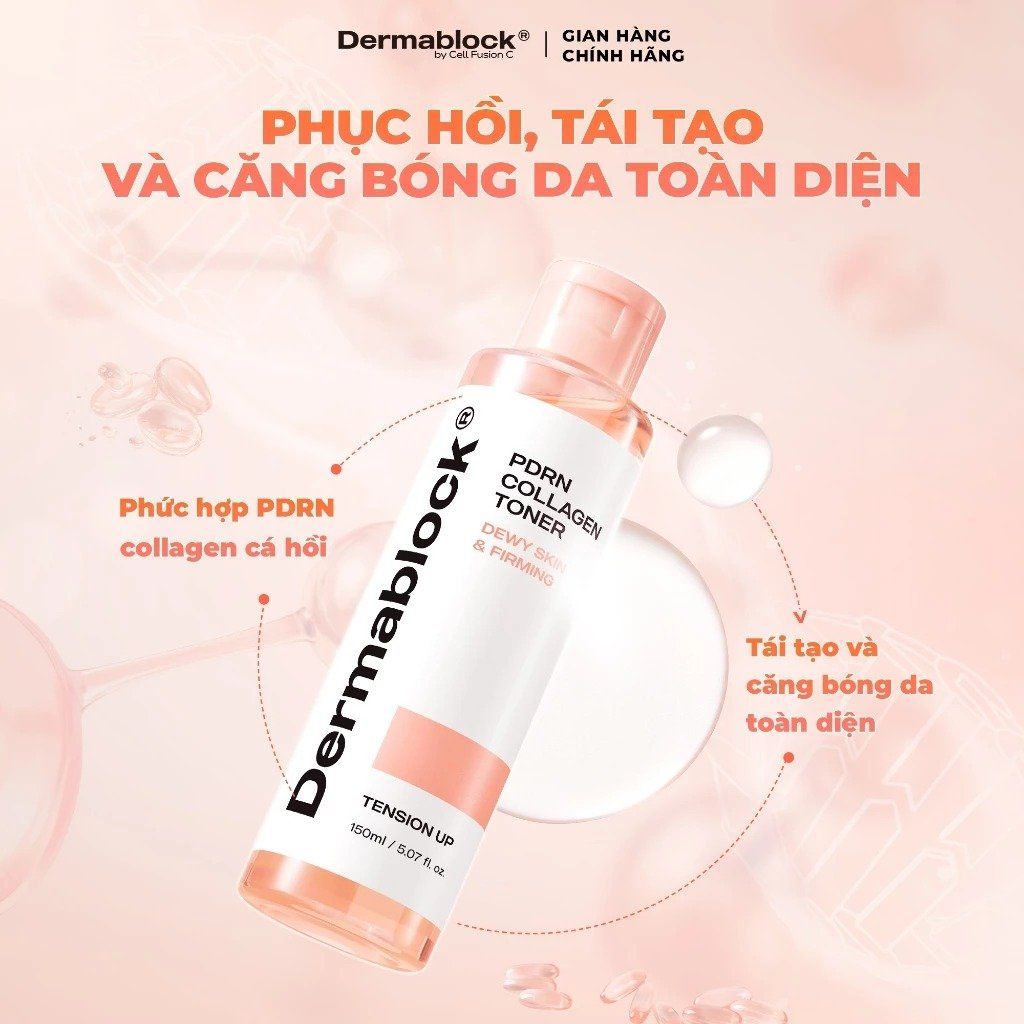 Nước hoa hồng Dermablock PDRN Collagen Toner 150ml – Nước hoa hồng phục hồi & sáng da