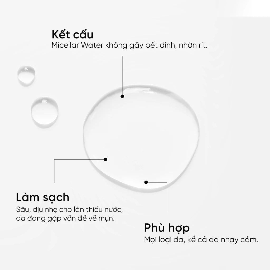 ● Sử dụng công nghệ miceller: Các hạt miceller giúp hấp thu bụi bẩn, bã nhờn dư thừa, tế bào chết tạo môi trường da khoẻ mạnh