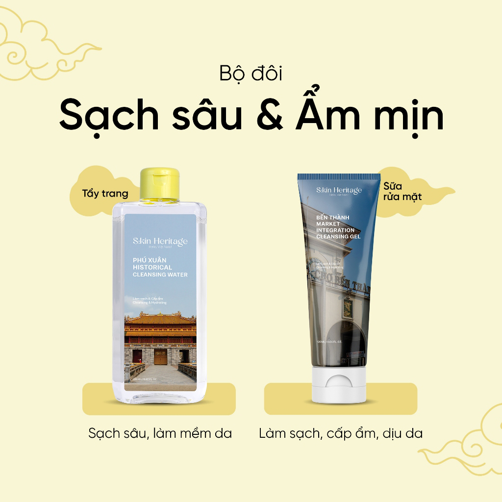 Lấy cảm hứng từ những cơn mưa rào xứ Huế, nước tẩy trang Phú Xuân của S:kin Heritage ra đời với khả năng làm sạch sâu, loại bỏ bụi bẩn và lớp trang điểm, trả lại cho bạn một làn da sạch sẽ, rạng ngời.
