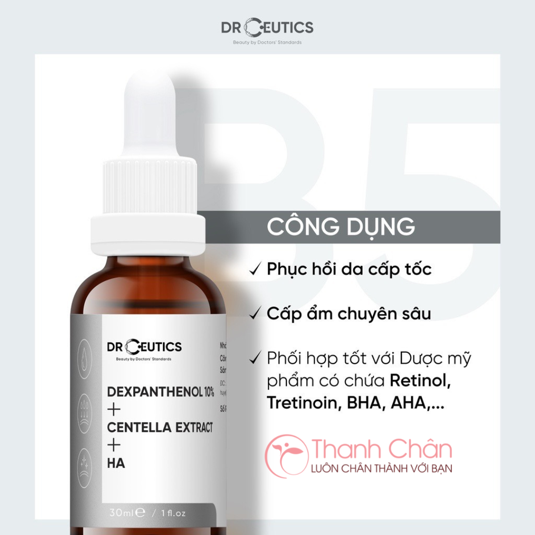 Serum B5 DrCeutics Dexpanthenol 10% + Centella Extract + HA, Cấp Ẩm Và Phục Hồi Da 10g/30g/100g