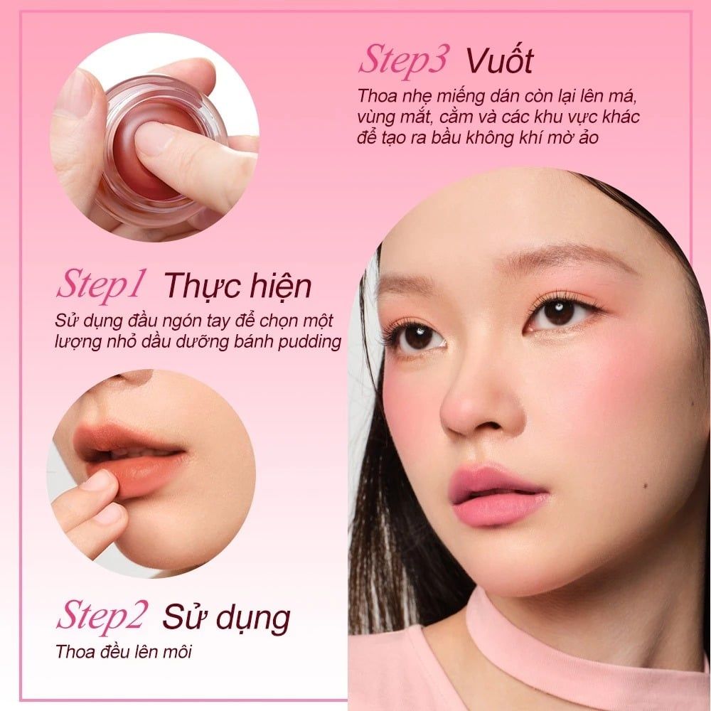 • Bước 2: Tán đều lên môi cho hiệu ứng mềm mịn, mọng tự nhiên.