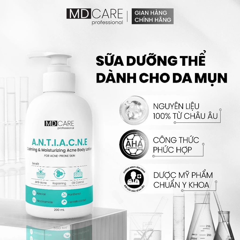 Sữa Dưỡng Thể Dành Cho Da Mụn 8% Azeclair - 5% Niacinamide MD CARE Calming Acne Body Lotion 200ml