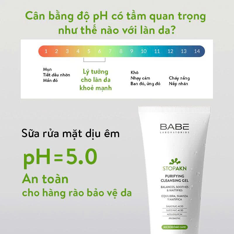 pH = 5.0, trung tính với pH tự nhiên, giúp củng cố hàng rào bảo vệ da