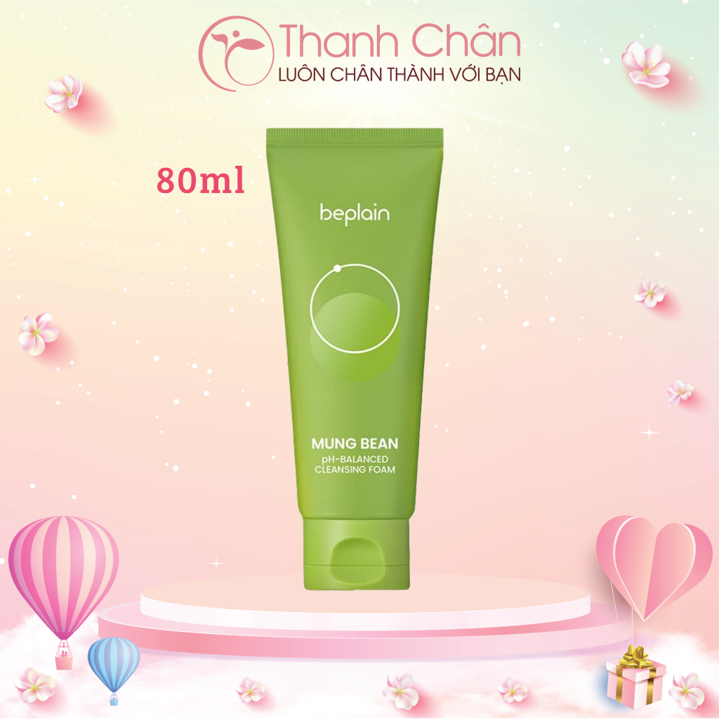 Sữa rửa mặt Beplain Mung Bean pH-Balanced Cleansing Foam chiết xuất đậu xanh dịu nhẹ với 32.32% chiết xuất đậu xanh cùng bột lá trà xanh, nhẹ nhàng rửa sạch lớp trang điểm và bụi bẩn mà không phá vỡ hàng rào bảo vệ tự nhiên của da.