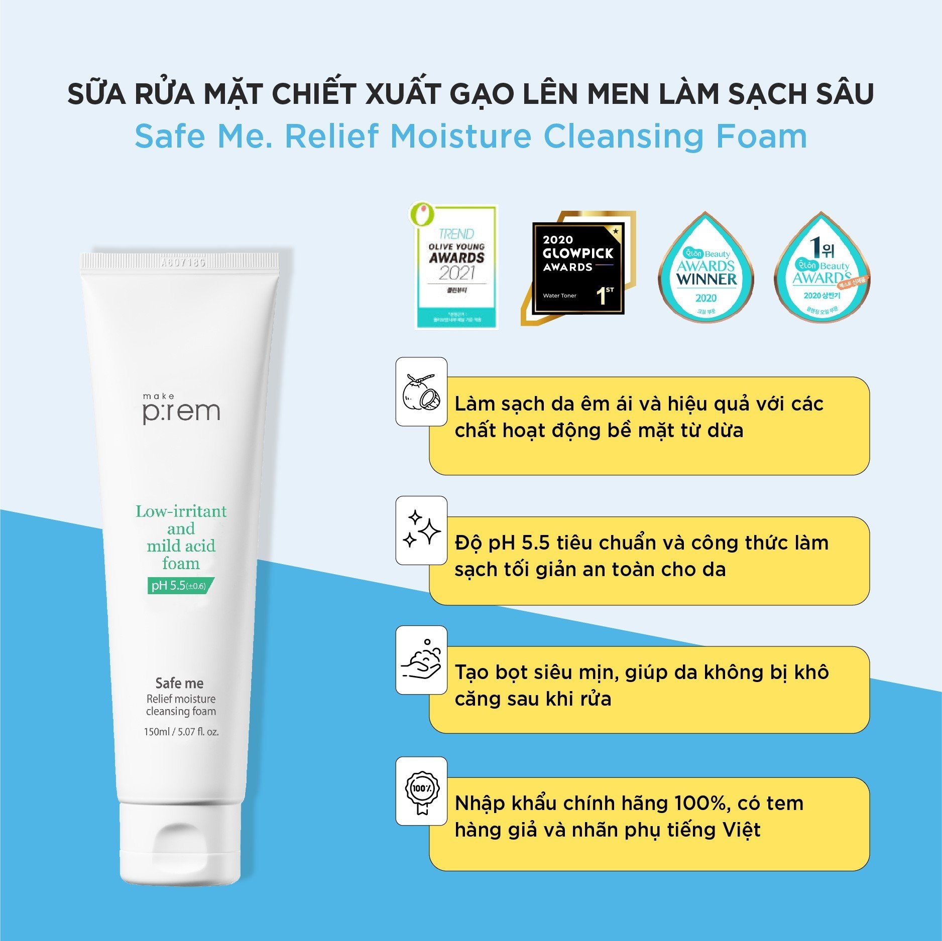 Sữa rửa mặt Make p:rem Safe me. Relief Moisture Cleansing Foam 150ml