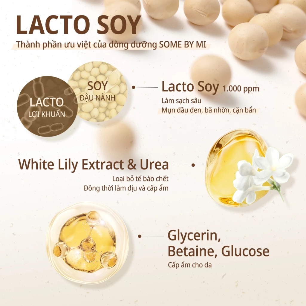 - Chiết xuất đậu nành lên men (Lactobacillus/Soymilk Ferment Filtrate): cung cấp dưỡng chất, tăng cường độ ẩm, cải thiện độ đàn hồi da