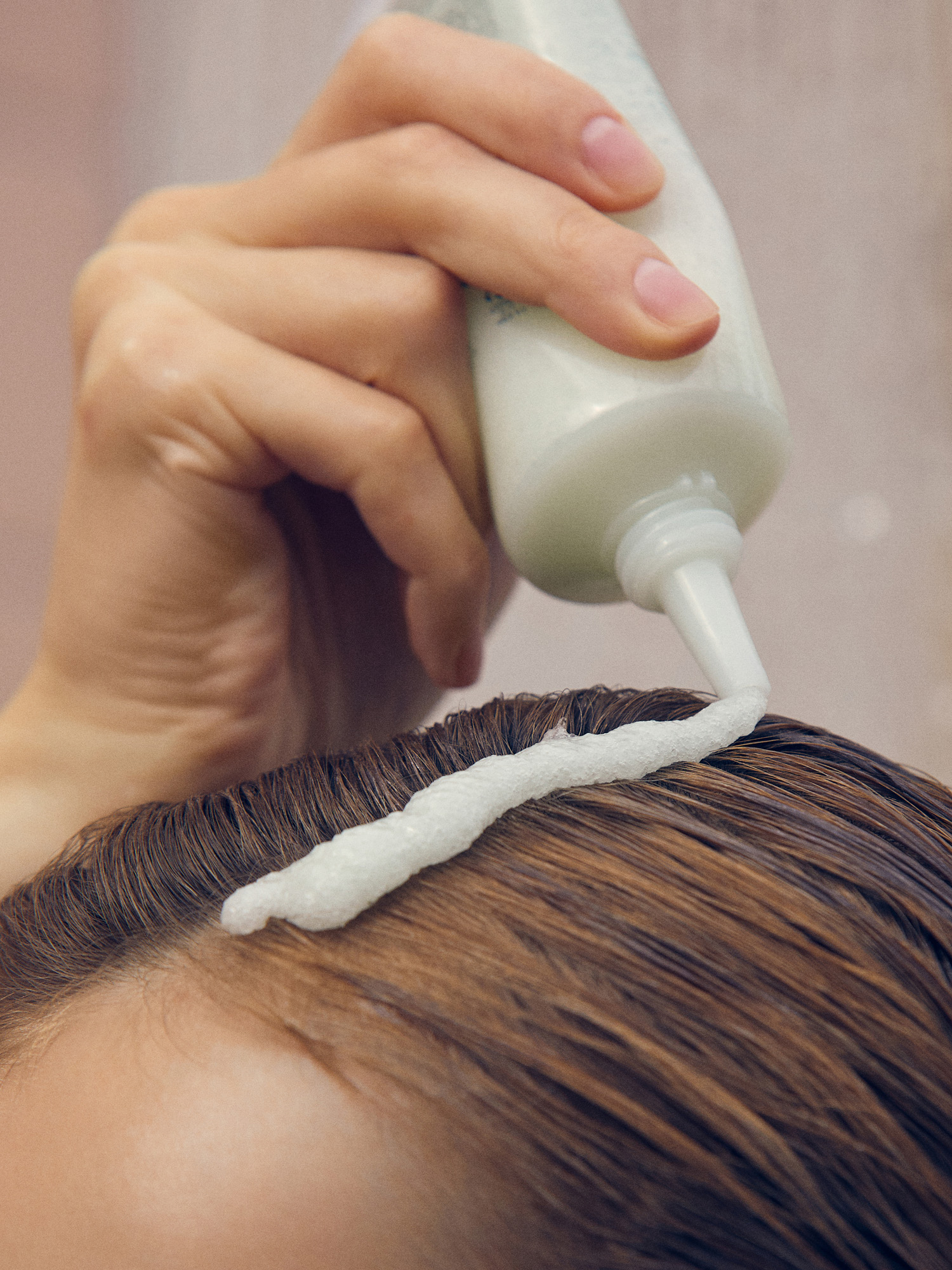 Sau khi làm ướt da đầu và tóc bằng nước ấm, thoa một lượng vừa phải lên da đầu.