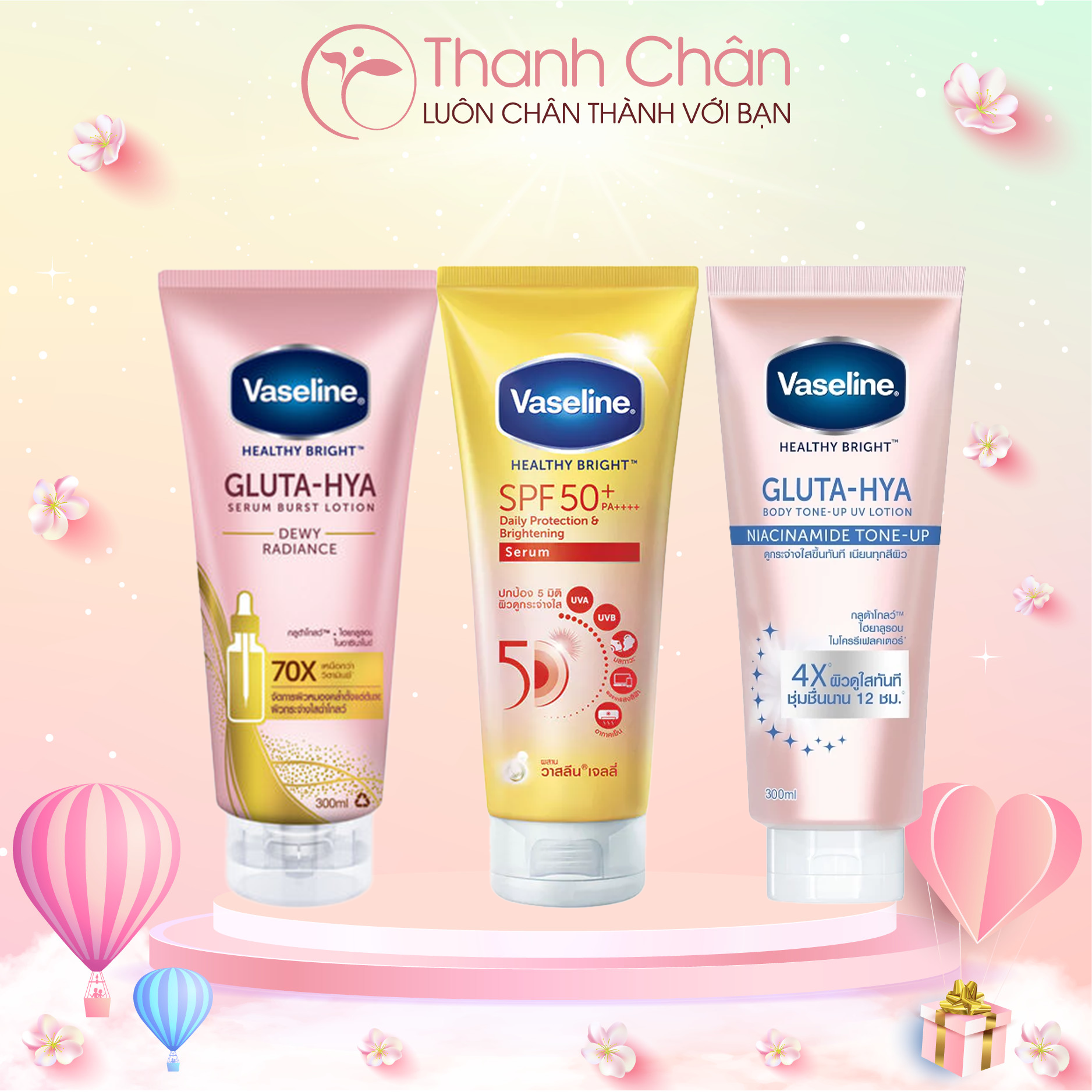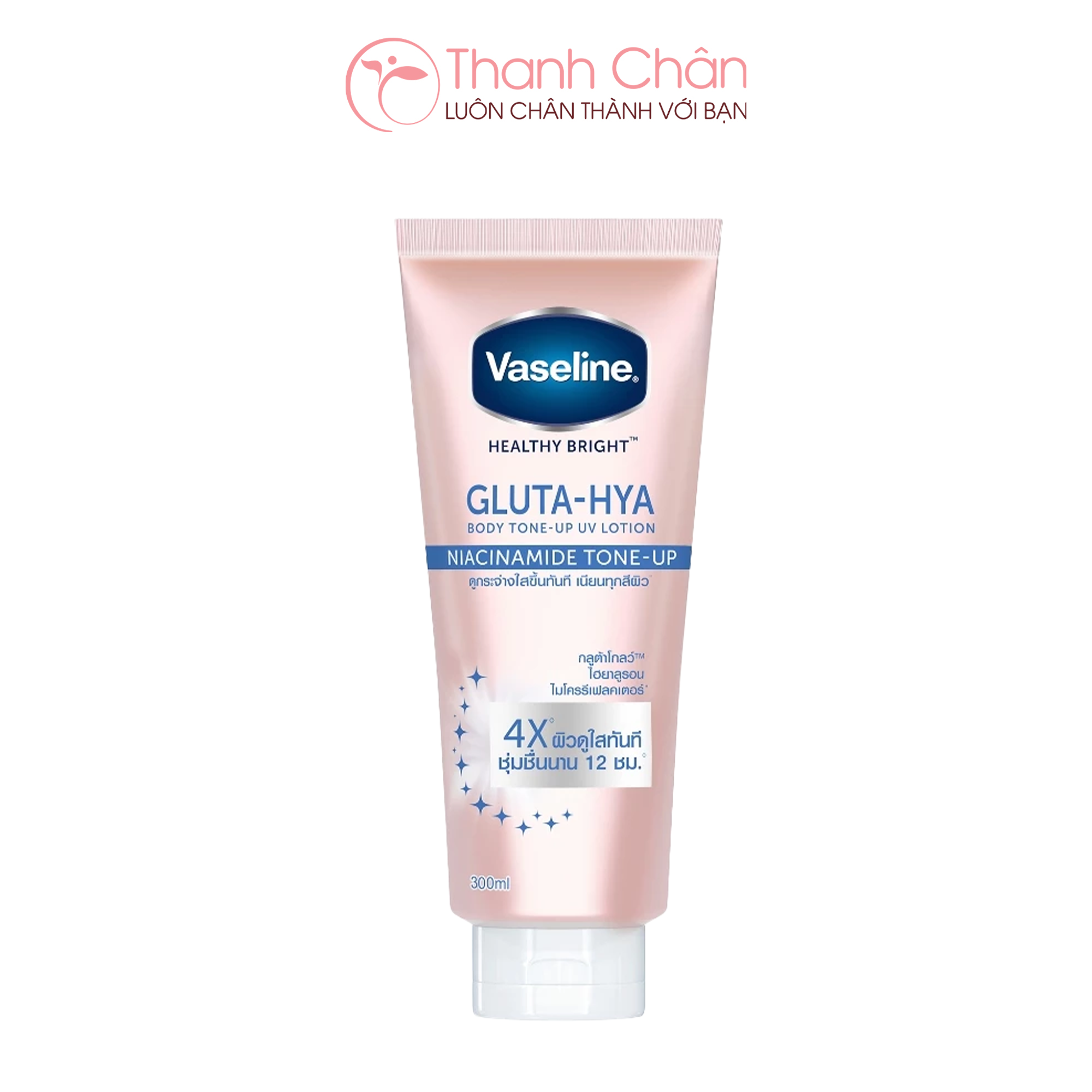 3️⃣ Vaseline Gluta-Hya Niacinamide Tone-Up UV Lotion 300ml (Hồng nhạt – 330ml) – Dưỡng thể nâng tông mỏng nhẹ tự nhiên, chống nắng, sáng da rạng rỡ