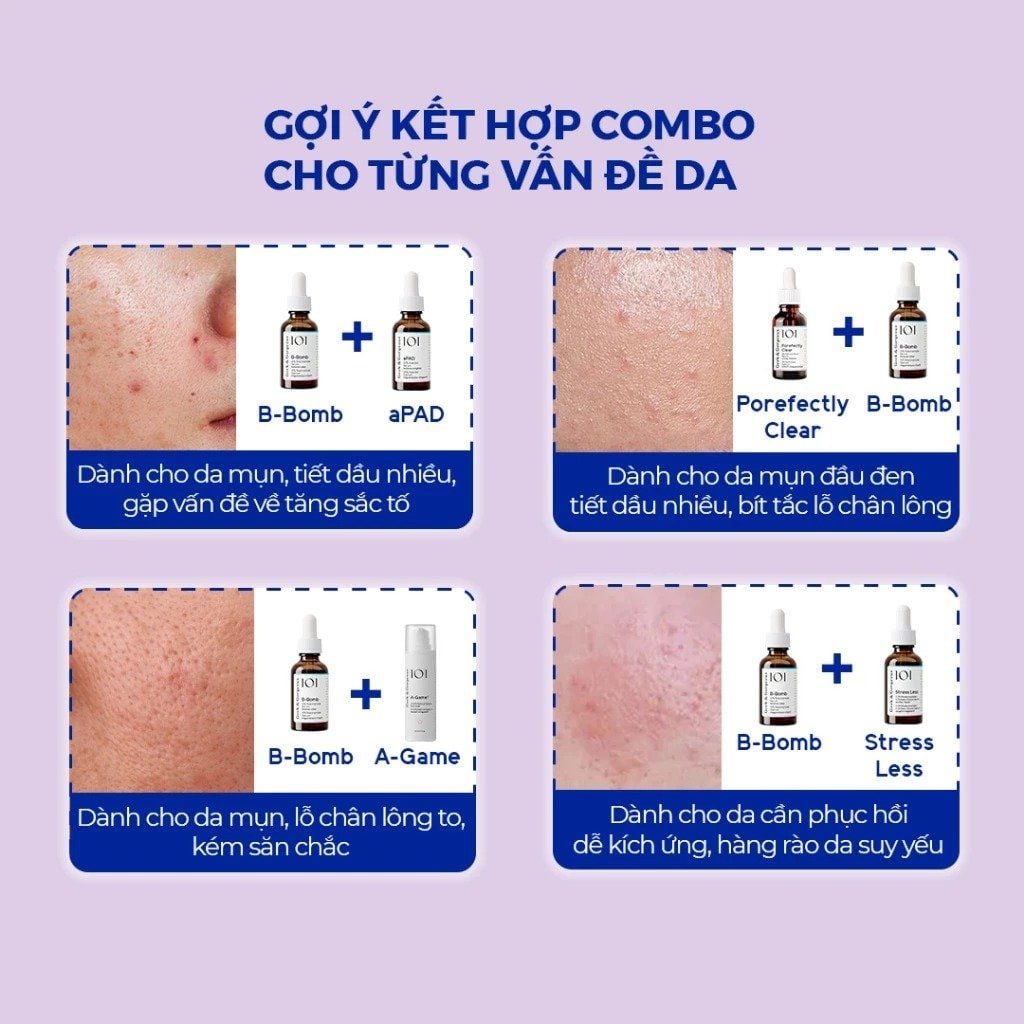 👉 Lưu ý: Không dùng chung với AHA/BHA hay Vitamin C nồng độ cao. Có thể kết hợp với serum Hyaluronic Acid để tăng hiệu quả dưỡng ẩm.