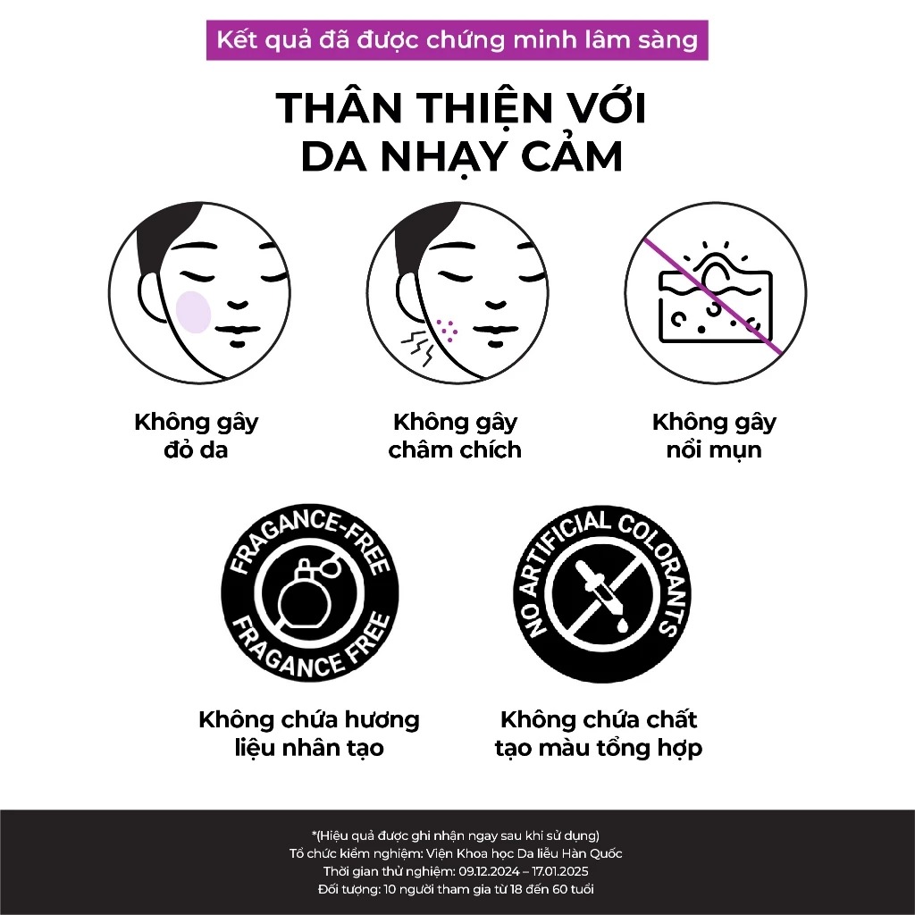 Phù hợp cả với làn da yếu, nhạy cảm.