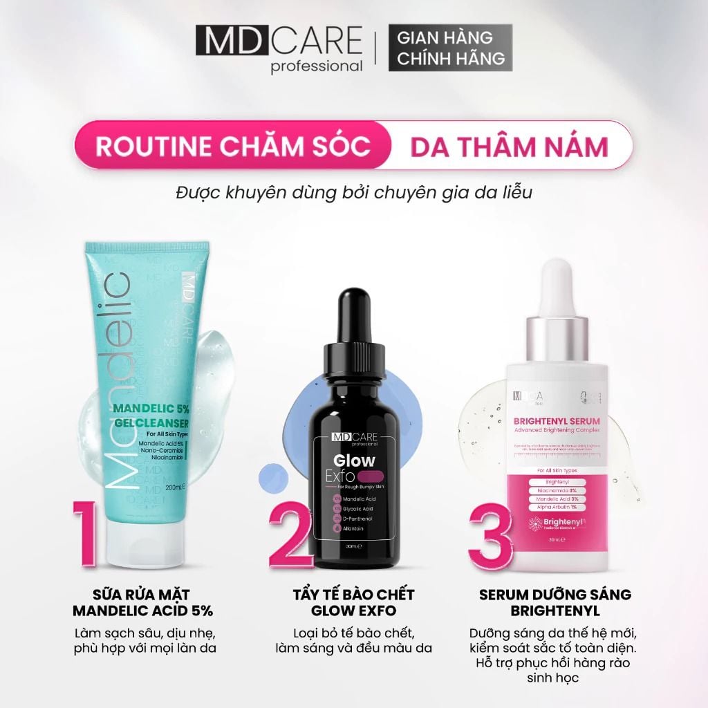 - MD Care là thương hiệu dược mỹ phẩm Việt Nam, phát triển dựa trên nền tảng khoa học và sự minh bạch thành phần. Các sản phẩm được chứng minh lâm sàng, an toàn khi sử dụng lâu dài để điều trị và cải thiện nhiều vấn đề về da.