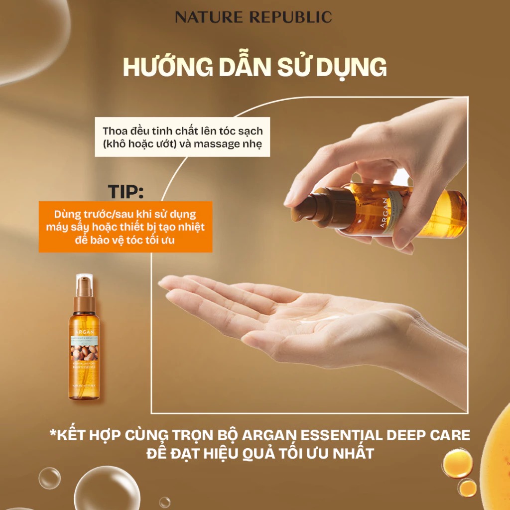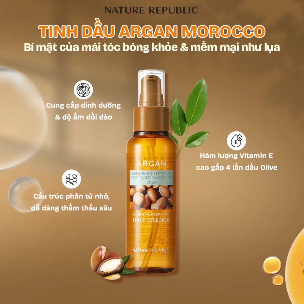 Tinh chất phục hồi tóc Nature Republic Argan Essential Deep Care Hair Essence 80ml