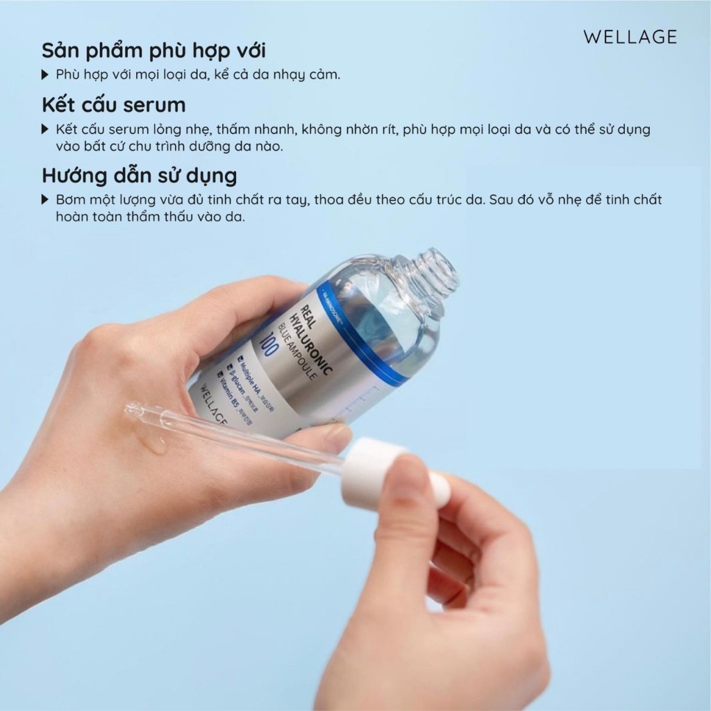 Tinh chất Wellage Real Hyaluronic Blue Ampoule 100 75ml, cấp ẩm dịu da