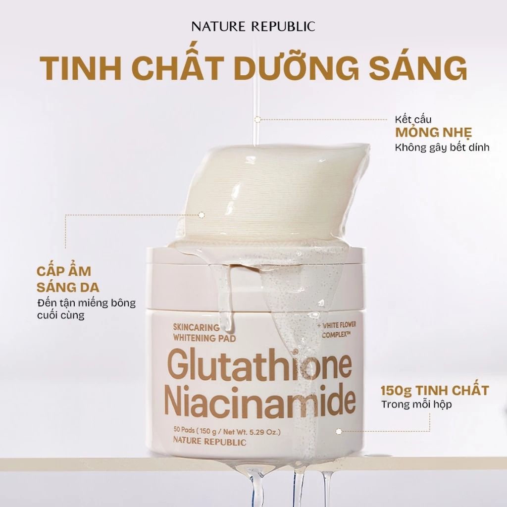 - Glutathione: Chống oxy hóa, hỗ trợ làm trắng và làm đều màu da.