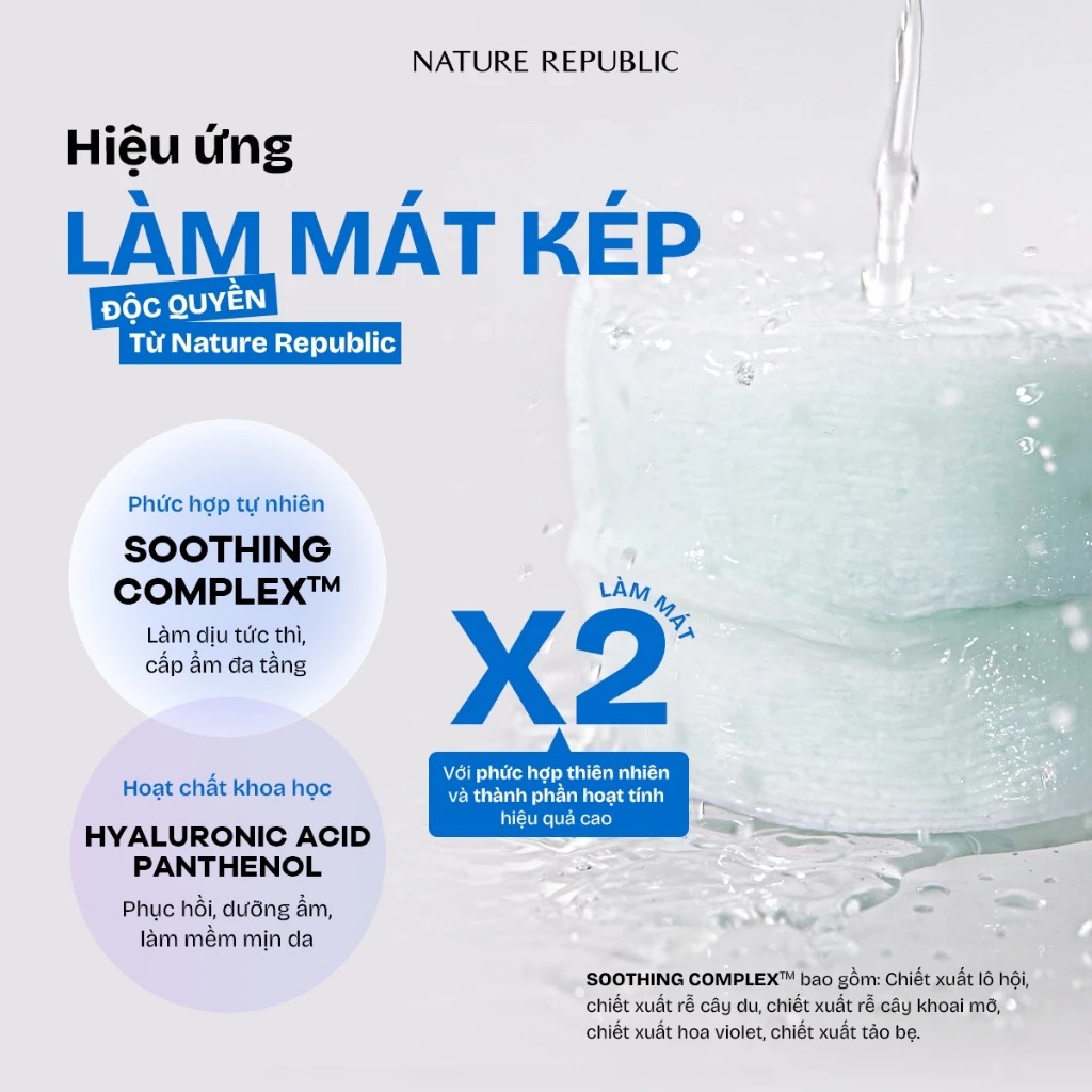 - Cấp ẩm tức thì, làm dịu da sau mụn, kích ứng, hay sau khi tiếp xúc nhiệt độ cao.