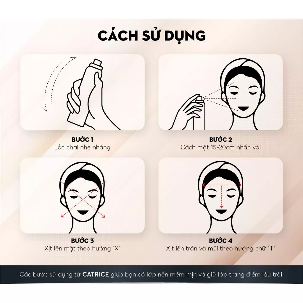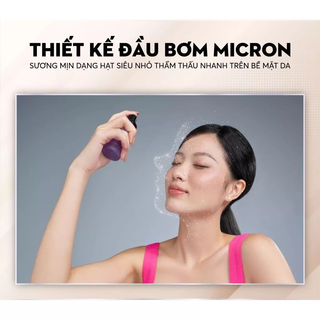 - B2 : Nhắm mắt và miệng, nhẹ nhàng xịt lên khuôn mặt, đảm bảo sản phẩm phủ đều mọi ngóc ngách trên da.